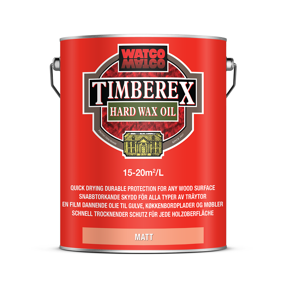 Timberex Hard Wax Oil is based on a mixture of natural oils and waxes from plants such as Linseed and Soya and harmless odourless solvents. Carnauba wax is used to accelerate the drying of the oil and provide a beautiful finish. The oils penetrate deeply into the wood surface, protecting it from the inside and keeping it healthy and elastic, whilst the hard wax protects the surface making the wood hardwearing, non slip and easy to maintain. Timberex Hard Wax Oil becomes a permanent part of the wood and requires no sanding when renovating. Timberex Hard Wax Oil is environmentally friendly, microporous, water repellent, dirt and wear resistant. Will not crack, peel, flake or blister. It is resistant against wine, beer, coffee, tea, fruit juices, and fizzy drinks. EN 71-3 certified (Toy Safe).