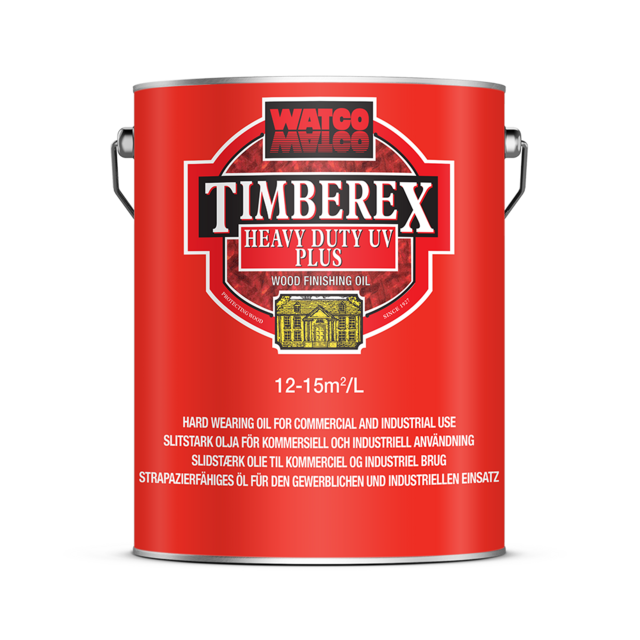 TIMBEREX® Heavy Duty UV PLUS utilise des huiles naturelles qui sèchent vite et des résines qui pénètrent en profondeur dans le bois. L'huile TIMBEREX® Heavy Duty UV PLUS a un pouvoir couvrant élevé, une odeur agréable, une très bonne résistance à l'eau et aux UV et un séchage rapide. Certification EN 71-3 (Convient pour les jouets).
